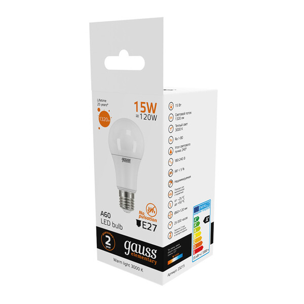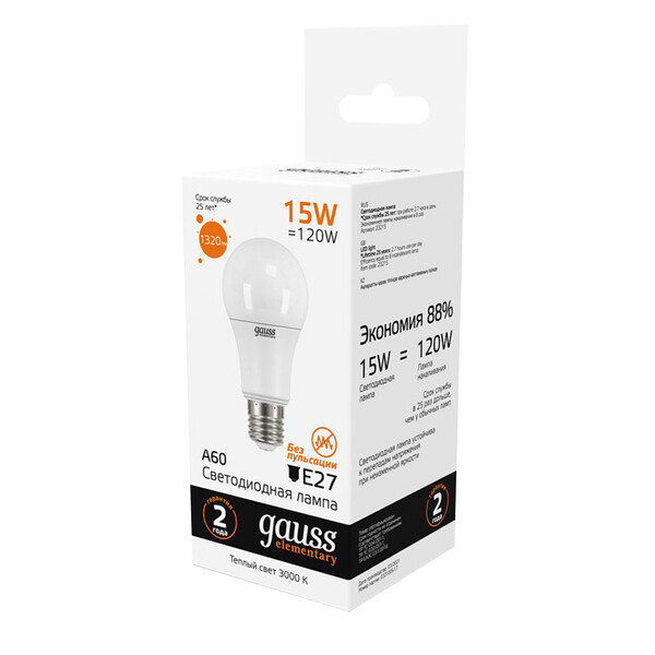 Светодиодные лампы Gauss Elementary – вечная классика, которая является энергосберегающей заменой обычным лампам накаливания. Модели представленные в ассортименте бренда обеспечивают пространство мягким не мерцающим светом и обладают всеми техническими характеристиками европейского уровня. В линейке представлены модели разных форм, высоких мощностей и размеров. Равномерное распределение света создает зрительный комфорт в любом помещении. Данная серия ламп создана для массового потребителя и имеет самое лучшее соотношение цена-качество.