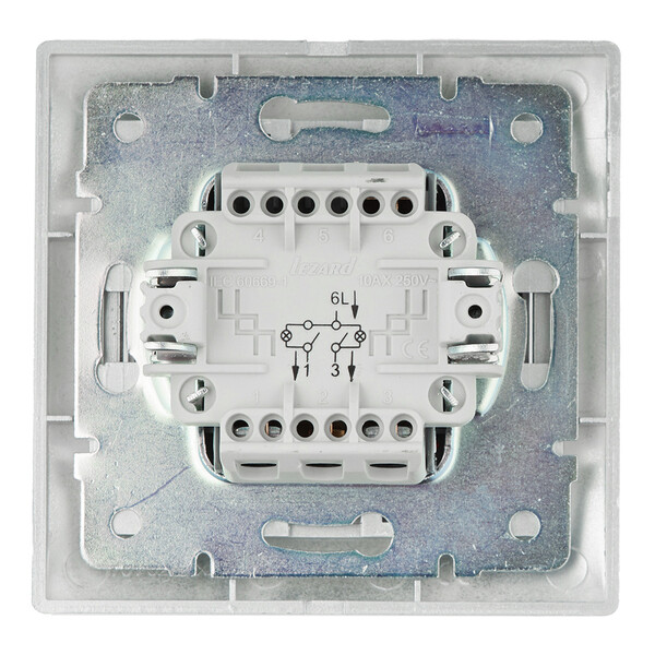 Предназначен для управления раздельными источниками света. Выключатель двухклавишный с подсветкой серебро, скрытой установки.