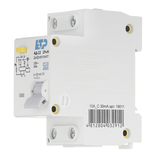 Предназначен для защиты электрической цепи от короткого замыкания, перегрузки и возникновения утечки тока (в частности, вследствие прикосновения человека к токоведущим частям), а также для предотвращения возгораний, т.е. совмещает функции автоматического выключателя и УЗО.