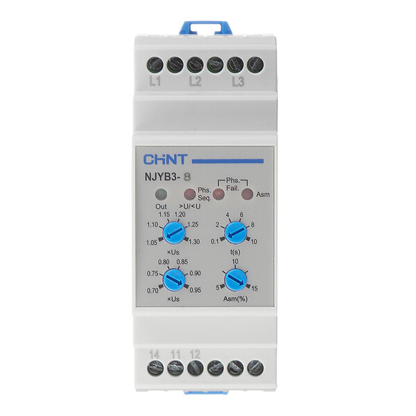 Реле контроля фаз предназначено для контроля повышенного напряжения, пониженного напряжения, обрыва фаз, последовательности фаз и несимметрии фаз в трехфазных трехпроводных цепях 380 В и трехфазных четырехпроводных цепях 220 В с частотой 50/60 Гц.