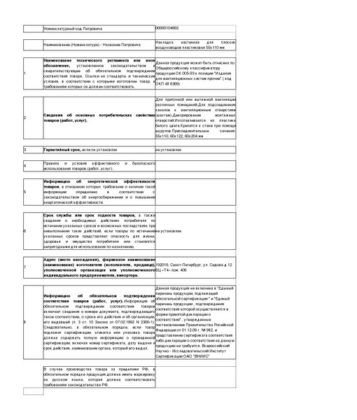 | Тип товара | Накладка |