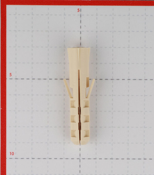 Предназначен для легких креплений (небольшие нагрузки) в бетон и полнотелый кирпич. В дюбель рекомендуется устанавливать универсальный саморез т.к. угол, шаг и заточка резьбы такого самореза производит правильное раскрытие дюбеля в отверстии, что позволяет выдерживать большие нагрузки в отличие от черных саморезов (ГД).