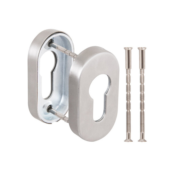 Накладки на овальном основании под цилиндровый механизм, предназначены для декорирования замочной скважины. Материал изготовления: нержавеющая сталь. Крепежная фурнитура в комплекте.