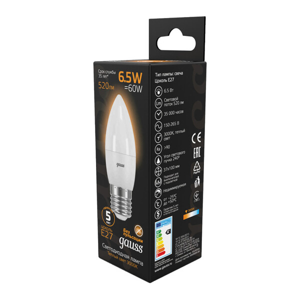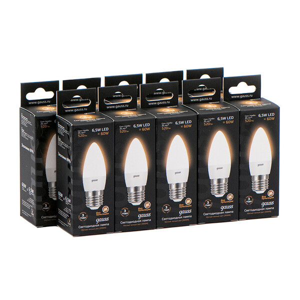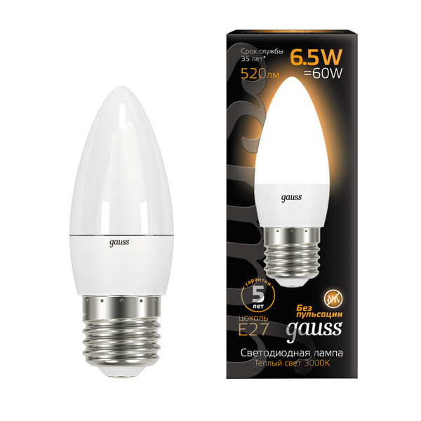 Светодиодные лампы Gauss Candle созданы в форме свечи. Лампы подойдут как для домашнего, так и для коммерческого использования. Такой тип освещения прекрасно смотрится в светильниках без плафонов или устанавливается в люстры и бра. Модель обладает широким диапазоном цветовых температур и мощностей, что поможет создать атмосферу тепла и уюта или концентрации. Равномерный спектр света создает зрительный комфорт в любом помещении. Данный тип освещения от Gauss обеспечивают стабильную работу в течение всего срока службы.