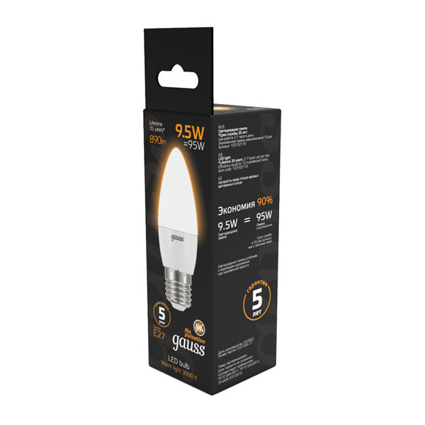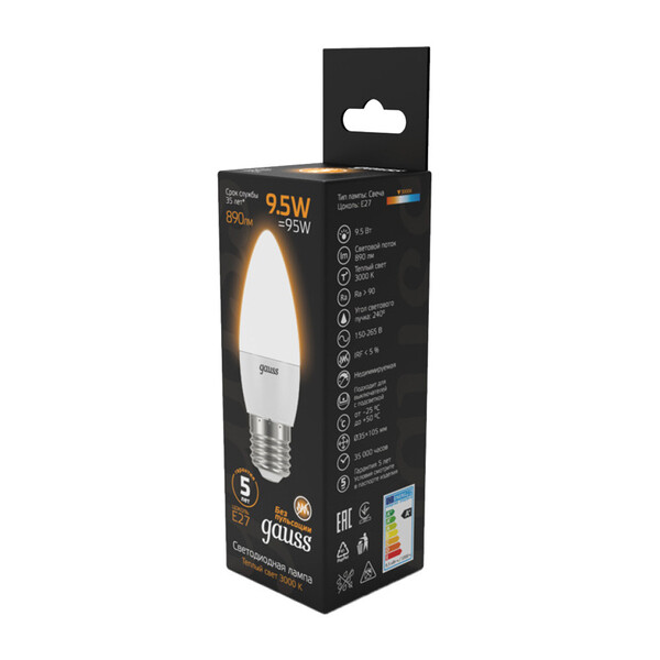 Светодиодные лампы Gauss Black Candle созданы в форме свечи. Лампы подойдут как для домашнего, так и для коммерческого использования. Такой тип освещения прекрасно смотрится в светильниках без плафонов или устанавливается в люстры и бра. Модель обладает широким диапазоном цветовых температур и мощностей, что поможет создать атмосферу тепла и уюта или концентрации. Равномерный спектр света создает зрительный комфорт в любом помещении. Данный тип освещения от Gauss обеспечивают стабильную работу в течение всего срока службы.