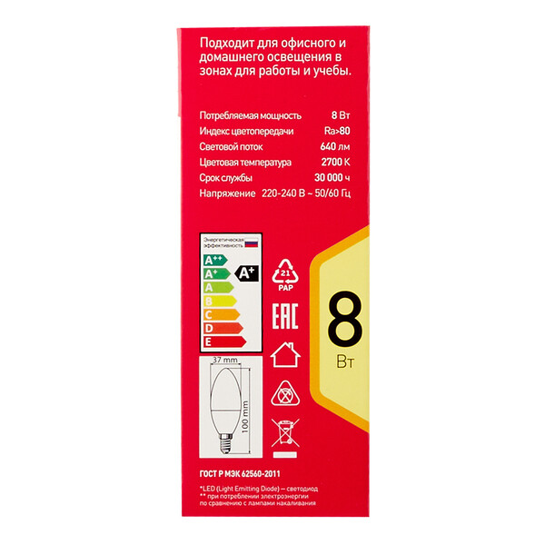 Предназначена для декоративного, интерьерного и общего освещения различных помещений. По силе освещения соответствует лампе накаливания мощностью 55 Вт.