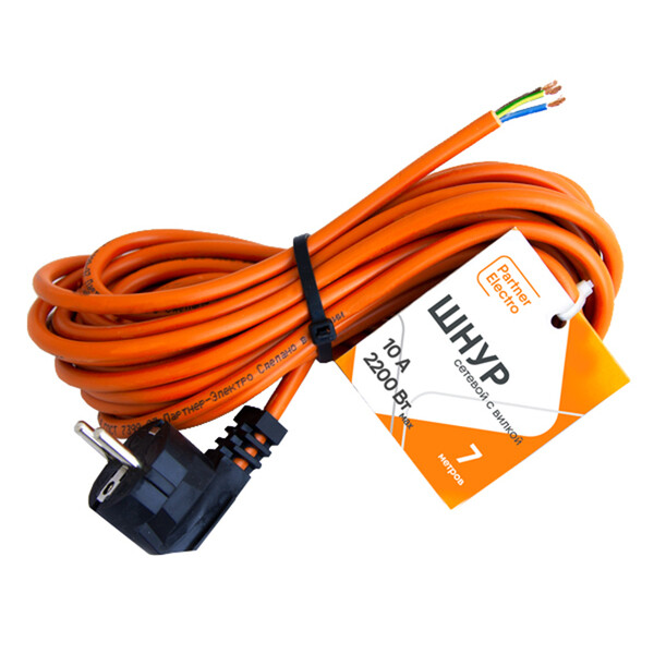 Предназначен для сборки или ремонта удлинителей, а также для подключения различного электрооборудования к сети. Сетевой шнур произведен из качественного провода ПВС с медными жилами, изготовленного в строгом соответствии с ГОСТ 28244-96 и обеспечивающего повышенную гибкость при использовании. Литая вилка изготовлена из первичного ПВХ пластиката/первичного полипропилена и имеет прочную конструкцию для безопасного соединения. Сетевой шнур Partner Electro соответствует требованиям международной директивы RoHS, ограничивающей содержание вредных веществ в целях защиты здоровья людей и окружающей среды.