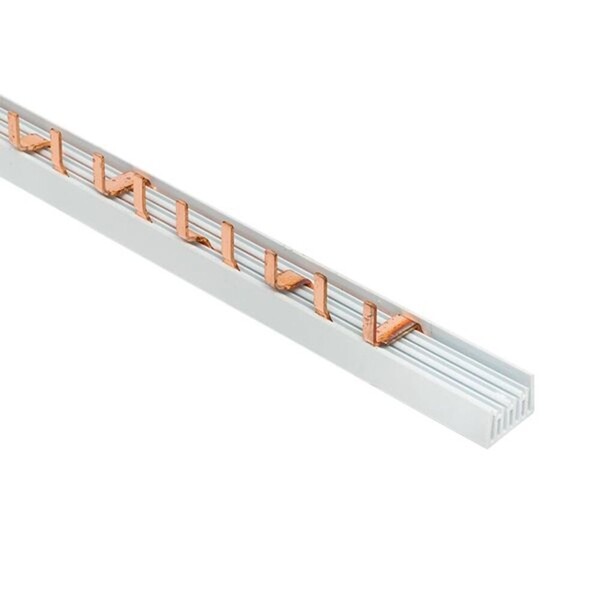 Шина соединительная представляет собой пластину, выполненную из меди, закрепленную в корпусе из диэлектрического материала, не поддерживающего горение, и выпускается стандартной длиной 1 метр.