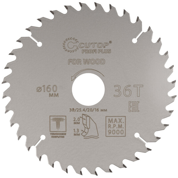 Предназначен для распила мягких и твердых пород древесины, МДФ, фанеры и др. В комплекте поставляются переходные кольца с посадочными диаметрами (4, 16, 20, 25, 30 мм). Диск имеет тефлоновое покрытие и компенсационные пазы, которые способствуют быстрому теплоотводу. Благодаря этому рез получается ровный, а диск не деформируется и имеет более длительный срок службы. Изготавливаются диски в специальной автоматической индукционной машине, которая обеспечивает более гладкую поверхность и острые зубья. Используется совместно с циркулярными и торцовочными пилами для продольного и поперечного реза.