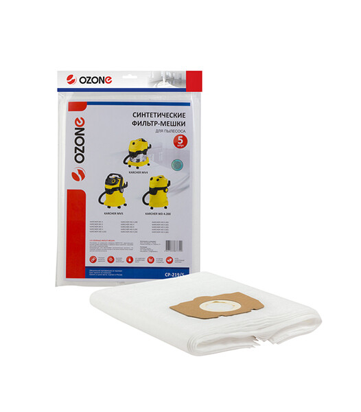 Сменные фильтр-мешки CP-219/5 для пылесоса Karcher WD 4, WD 6 – 5 штук. Синтетические многослойные. Не боятся мокрой пыли, острых предметов. Продлевают срок службы пылесоса.
