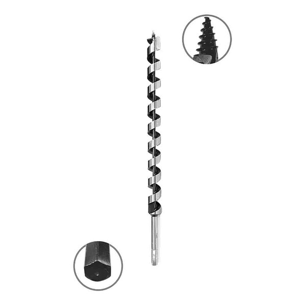 Предназначено для глубокого сверления в заготовках ДСП, мягких и твердых породах древесины. Материал сверла – инструментальная сталь повышенной прочности, которая подходит для изготовления сверл, сохраняя их режущие качества и высокий рабочий ресурс. С помощью шестигранного хвостовика 12,5 HEX сверло надежно закрепляется в патроне дрели. Специальная форма шнека и центрирующего острия обеспечивают быстрый заход в материал и выход без заклинивания.
