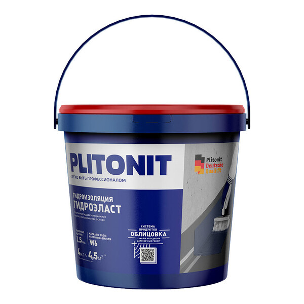 Эластичная гидроизоляционная мастика для внутренних и наружных работ на полимерной основе. Применяется для устройства душевых, в том числе без поддона, ванных, туалетов, прачечных, других влажных помещений и балконов. Подходит для работ по бетону, штукатурке, кирпичной кладке, гипсокартону и гипсовой штукатурке. Подходит для использования в системе «теплый пол». Водонепроницаемость w6. Содержит песок.