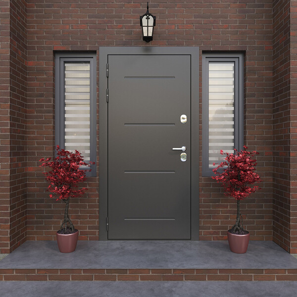 Предназначена для установки в качестве уличной входной двери в частных домах, загородных коттеджах, таунхаусах, на границе улица /дом, в том числе в жилых и общественных зданиях. Для дверей, имеющих контакт с улицей, обязательно наличие козырька, защищающего от прямых воздействий осадков и солнечного света. Полотно изготовлено из стали. С внутренней стороны облицована царговой МДФ-панелью 16 мм, цвет – лиственница бежевая, вставки из стекла Лакобель.