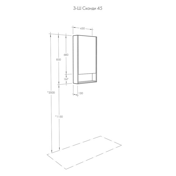 Предназначен для оборудования ванных комнат. Зеркальный шкаф коллекции Сканди 45 включает регулируемые стеклянные полочки за зеркальным фасадом и открытую нишу для косметических средств, которые всегда должны быть под рукой. По желанию можно дополнительно приобрести светильник. Модель универсальная за счет перенавешивания фасадов.