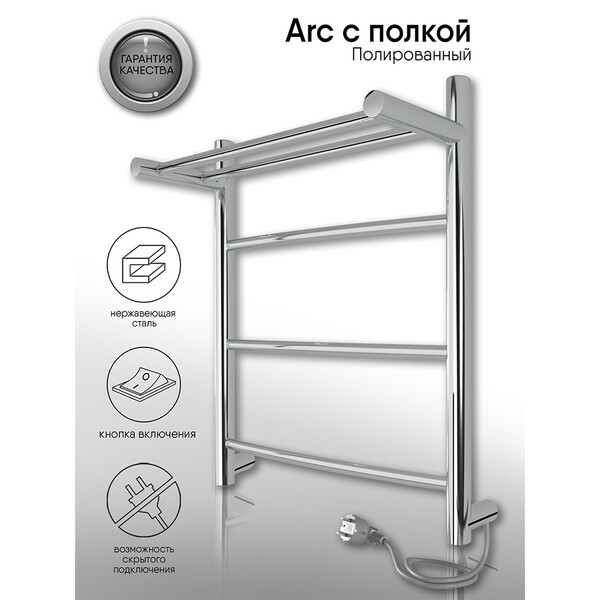 Полотенцесушитель электрический Indigo Arc с полкой в размере 500х400 (ВхШ) выбирают за его классический вид – лесенки и универсальность. Модель оснащена кнопкой включения на нижней части стойки. Универсальность изделия предусматривает подключение через прямой провод, который переставляется на нужную вам сторону или скрытое подключение без покупки дополнительного переходника. Длина прямого провода 1,2 метра. Изделие имеет полку для большего удобства и комфорта. Полотенцесушитель Arc относится к энергоэффективным изделиям, потребляемая мощность в данном размере 80 Вт. Специальная технология нагревательного кабеля защищает полотенцесушитель от перегрева что влияет на длительные сроки службы. Полотенцесушитель Indigo Arc с полкой застрахован и имеет гарантию 3 года. Выбирая Indigo вы получаете надежный продукт из нержавеющей стали с гаранти...