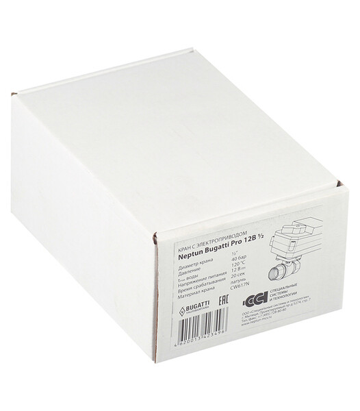 Компактные шаровые краны с электроприводом серии Neptun Bugatti Pro могут использоваться в системах контроля протечки воды, системах обогрева, фанкойлах, тепловых насосах или установках с автоматически регулируемой подачей холодной и горячей воды. Рабочие жидкости – вода или любая жидкость, совместимая с P.T.F.E. Длина соединительного провода – 0,5 м. Потребляемая мощность – 1.4 Вт.