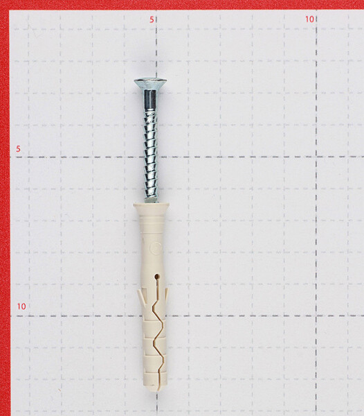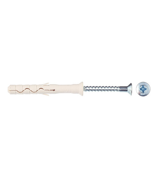 Предназначен для легких креплений (небольшие нагрузки) в твердые материалы: полнотелый кирпич, бетон, природный камень. Нейлон обеспечивает надежное сцепление с материалом основания. Резьбовой оцинкованный гвоздь повышенной прочности заранее установлен в дюбель.