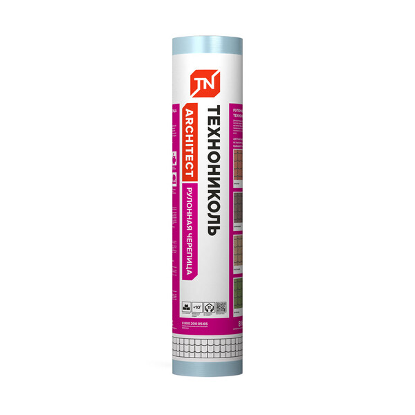Рулонную черепицу Технониколь с рисунком получают путем пропитки основы из полиэфира битумным вяжущим с добавлением СБС полимеров с последующим нанесением на нижнюю сторону полотна самоклеящегося битумного слоя. Верхнее покрытие материала – цветной базальт и минеральная цветная посыпка в форме рисунка, нижнее покрытие – силиконизированная съемная пленка. С верхней стороны материал имеет продольную битумную полосу, защищенную силиконизированной съемной пленкой. Материал предназначен для устройства однослойного декоративного покрытия на скатных кровлях со сплошным, ровным, сухим, деревянным настилом малоэтажных зданий и сооружений, частного домостроения, высотой до трех этажей с устройством холодного чердака. Применяется при угле наклона от 3 до 60°.
