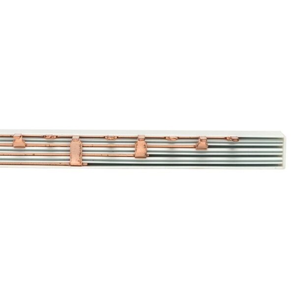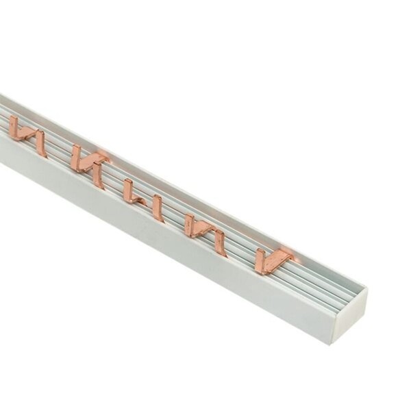 Шина соединительная представляет собой пластину, выполненную из луженой меди, закрепленную в корпусе из диэлектрического материала, не поддерживающего горение, и выпускается стандартной длиной 1 метр.