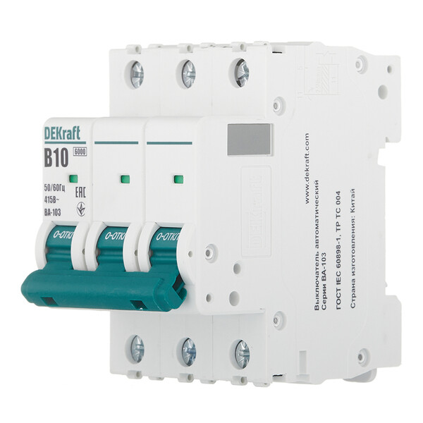 Автоматический выключатель модульный Dekraft BA-103 3P 10А тип B 6 кА 230/400 В (12239DEK)