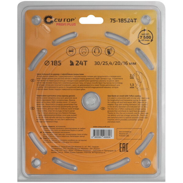 Предназначен для распила мягких и твердых пород древесины, МДФ, фанеры и др. В комплекте поставляются переходные кольца с посадочными диаметрами (4, 16, 20, 25, 30 мм). Диск имеет тефлоновое покрытие и компенсационные пазы, которые способствуют быстрому теплоотводу. Благодаря этому рез получается ровный, а диск не деформируется и имеет более длительный срок службы. Изготавливаются диски в специальной автоматической индукционной машине, которая обеспечивает более гладкую поверхность и острые зубья. Используется совместно с циркулярными и торцовочными пилами для продольного и поперечного реза.
