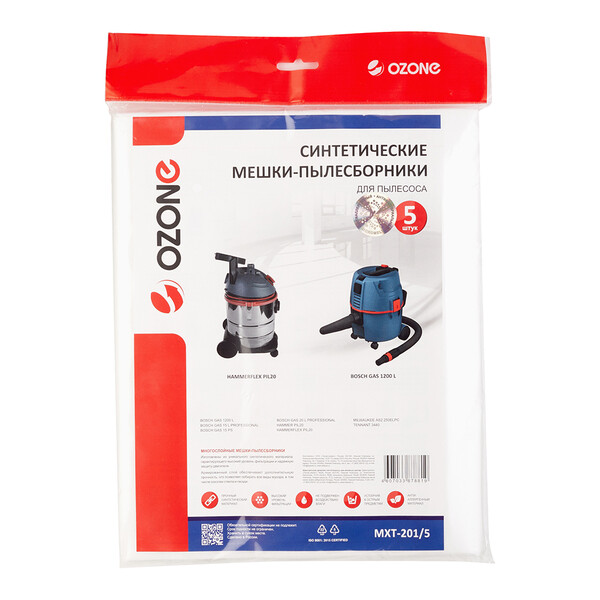 Сменные мешки для пылесоса MXT-201/5, BOSCH GAS 15, BOSCH GAS 20, FLEX, HAMMER – 5 шт. Синтетические, не боятся мокрой пыли.