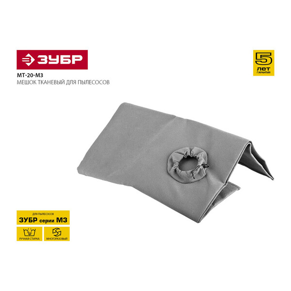 Многоразовый мешок с возможностью очистки для сбора мусора при сухой уборке помещений. Используется с пылесосами ЗУБР. Модели пылесосов – ПУ201400 М3, ПУ301400 М3. Внимание! Цвет товара может отличаться от представленного на фото.