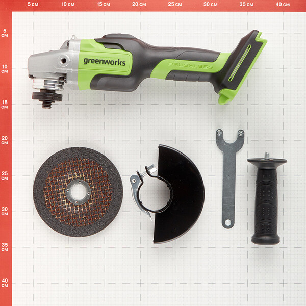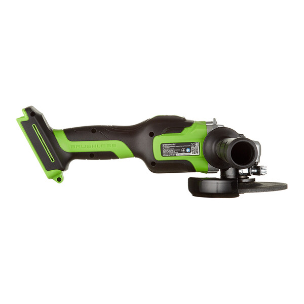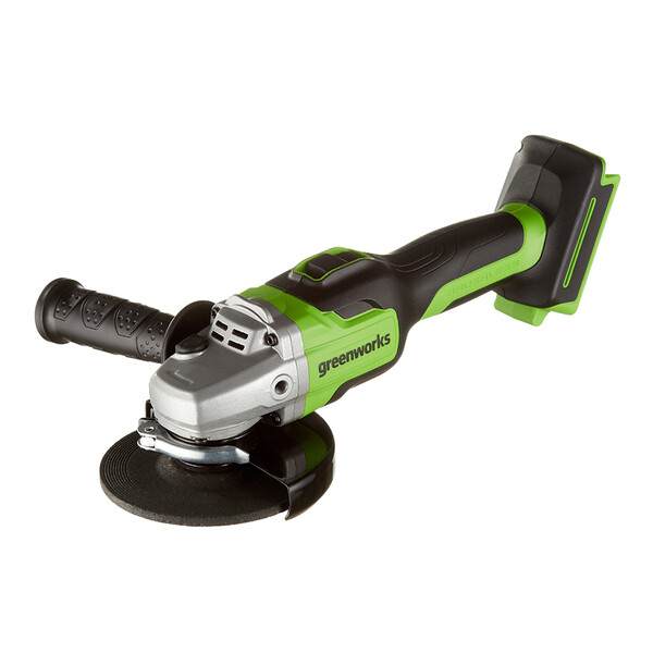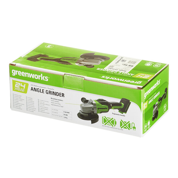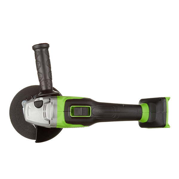 Угловая шлифовальная машина (болгарка) – предназначена для резки и шлифования металла. Мощный бесщеточный двигатель работает от аккумулятора 24В, что определяет высокую производительность и скорость реза. Максимальный размер режущего диска – 125 мм. Скорость вращения диска 10 500 оборотов в минуту. Рукоятка устройства прорезинена для улучшения контроля над машинкой и предотвращения выскальзывания инструмента из рук. Рукоятка очень удобно лежит в руке. В комплекте с устройством идет дополнительная боковая рукоять. УШМ оснащается ограничителем пускового тока для плавной регулировки пуска инструмента. Двигатель оснащен магнитным тормозом, который быстро останавливает режущий диск после выключения инструмента. Для быстрой замены оснастки УШМ оснащена блокировкой шпинделя. Важным преимуществом данной модели является малый вес – 1,5 кг. Вн...