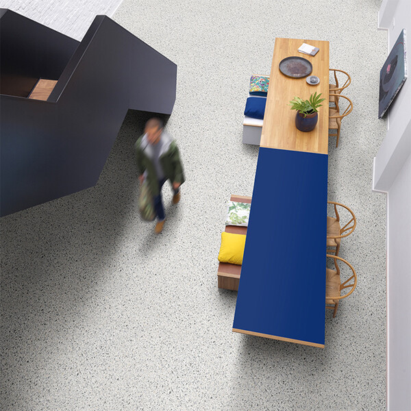 Дизайн в стиле тераццо, не требующий стыковки, будет гармонично сочетаться со всеми интерьерами. Высокая плотность, устойчивость к износу и класс пожарной безопасности КМ 2 позволяет укладывать его в общественных местах с высокой проходимостью. Тон (оттенок) может отличаться от партии к партии.