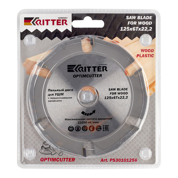 Пильный диск известного немецкого производителя Ritter из серии OptimCutter премиум качества отличается износоустойчивостью, долгое время сохраняет рабочее состояние. Мало подвержен деформации, истиранию или перегреванию.Модель изготовлена из 50С стали , напайки твердосплавные карбид вольфрам YG8. Оснащен 6 зубьями из карбида вольфрама и имеет специальную конструкцию, которая обеспечивает безопасность применения с высокооборотистыми УШМ. При продолжительной работе корпус диска не нагревается. Диск пильный Ritter OptimCutter прдназначен для резки по дереву/пластику исключительно в комбинации с углошлифовальными машинками.
