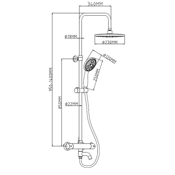 Душевая система с термостатом и верхним душем выполнена из латуни, нержавеющей стали и ABS -пластика. Высокочувствительный термоэлемент быстро реагирует на изменение температуры воды и приводит ее к значению, заданному пользователем.
