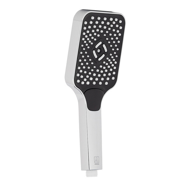Трехпозиционная прямоугольная лейка душевая Pulsar. Типы потока струи – душ, водный туман, вибромассаж. Душевая сетка с оптическим эффектом. Хромовое покрытые с черным матовым душевым диском и белыми прорезиненными форсунками.