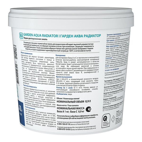 Глянцевая акриловая эмаль для радиаторов предназначена для окраски батарей, радиаторов, труб системы водяного отопления в жилых и коммерческих помещениях (спортивные залы, театры, рестораны, бани, прачечные, вокзалы). Может использоваться в качестве универсальной эмали для окрашивания элементов интерьера. Рекомендована для окраски в детских дошкольных, учебных, лечебно-профилактических учреждениях и других помещениях с предусмотренным режимом влажной дезинфекции. Применяется по предварительно загрунтованным металлическим поверхностям внутри помещений, а также по поверхностям, ранее окрашенным алкидными или акриловыми эмалями. База С используется только в колерованном виде. Во избежание различий в оттенке используйте эмаль одной партии.