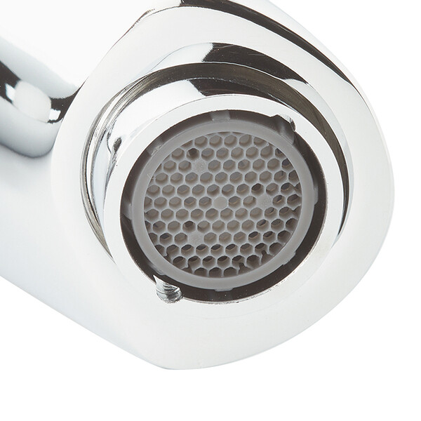 Смеситель бесконтактного типа для умывальника Lemark Project с серебристым корпусом из латуни, покрытым хромом, оформлен в современном стиле. Модель монтируется на раковину в горизонтальном положении и подключается к трубам водоснабжения с помощью мягкой подводки. Все, что требуется для установки, входит в комплект. Предусмотрено сенсорное управление, источником питания служат четыре батарейки AA – их надо покупать дополнительно. Излив традиционной формы дополнен антивандальным аэратором, его длина – 11,9 см, высота – 12,3 см.