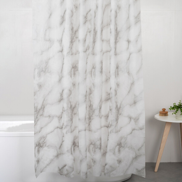Шторка для ванной комнаты "Mirra" от бренда Fora изготовлена из экологически чистого материала PEVA, который безопасен для использования в ванной комнате и обеспечивает непроницаемость и легкость при использовании. 12 люверсов из нержавеющей стали гарантируют надежное крепление шторки. Универсальный размер 200х180 см и стильный дизайн под мрамор с серебряными жилами подойдут к любому интерьеру ванной комнаты.