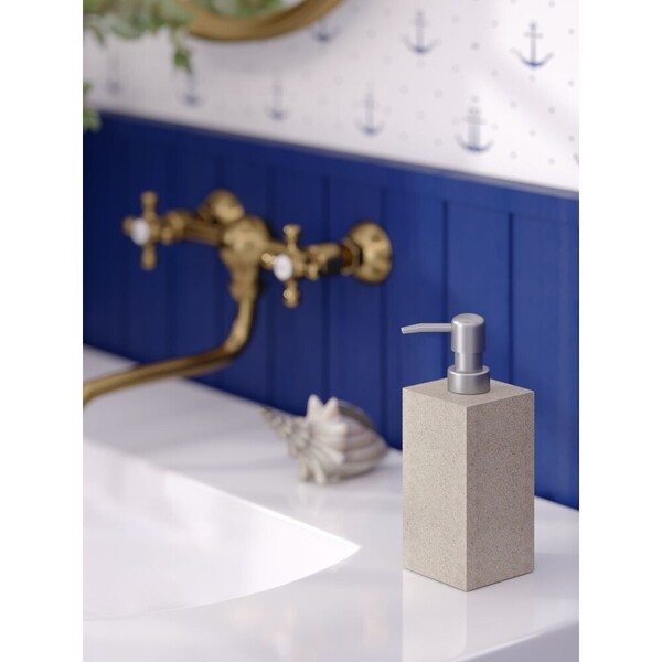 Дозатор настольный для ванной комнаты прямоуголбной формы. Предназначен для порционной подачи мыла, шампуней и других гелеобразных жидкостей. Изготовлен из полирезины. Подача моющего средства осуществляется с помощью помпы. Влагоустойчив.