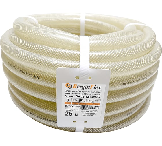 Шланг ПВХ маслобензостойкий/прозрачный (25х32мм 10 атм. 25 м) Berginflex PVC-OA-25B