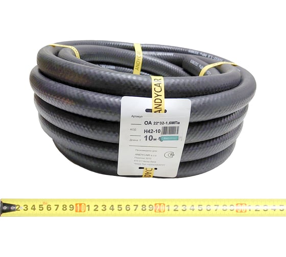 Шланг резиновый 3-х слойный маслобензостойкий ГОСТ 10362-2017 (22х32 мм 16 атм. бухта 10 м) Andycar H42-10