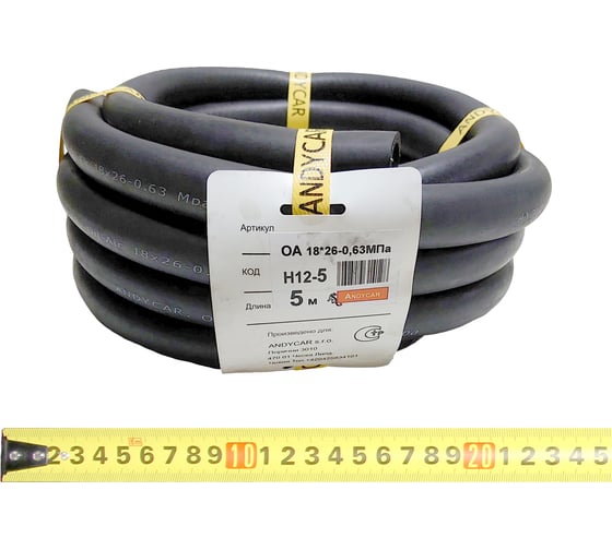Шланг резиновый 3-х слойный маслобензостойкий ГОСТ 10362-2017 (18х26 мм 6.3 атм. бухта 5 м) Andycar H12-5