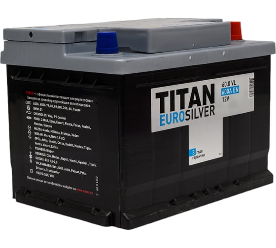 Аккумулятор TITAN EUROSILVER 60.0 VL обратная полярность, низкий, 600 А, 242x175x175 мм 460700888462