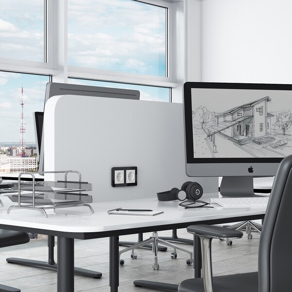 Изготовлена из акрилового стекла толщиной 2 мм, обрамленного тонкой фаской. Основание выполнено из поликарбоната в элегантной изогнутой форме, создающей визуальный эффект парения.