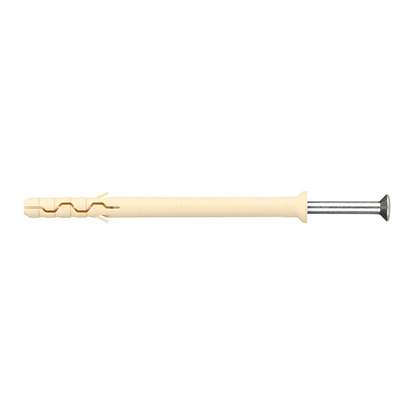 Предназначен для легких креплений (небольшие нагрузки) в твердые материалы: полнотелый кирпич, бетон, природный камень. Нейлон обеспечивает надежное сцепление с материалом основания. Резьбовой оцинкованный гвоздь повышенной прочности заранее установлен в дюбель.
