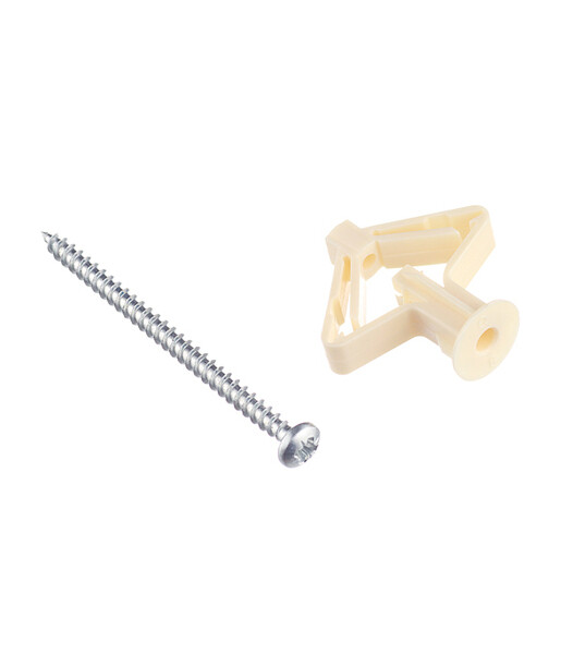 Предназначен для крепления во всех листовых материалах толщиной более 12 мм (в т.ч. в гипсокартоне) и может быть использован в кирпиче и бетоне. Изготовлен из специального пластика, который выдерживает температурные режимы от -70°C до +110°C и не реагирует на изменение влажности.