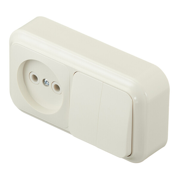 Блок выключатель и розетка Svet двухклавишный накладной бежевый (EV0362-5242)