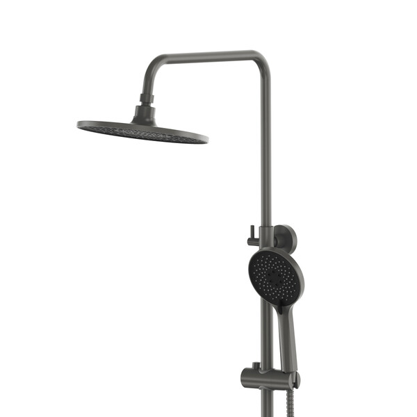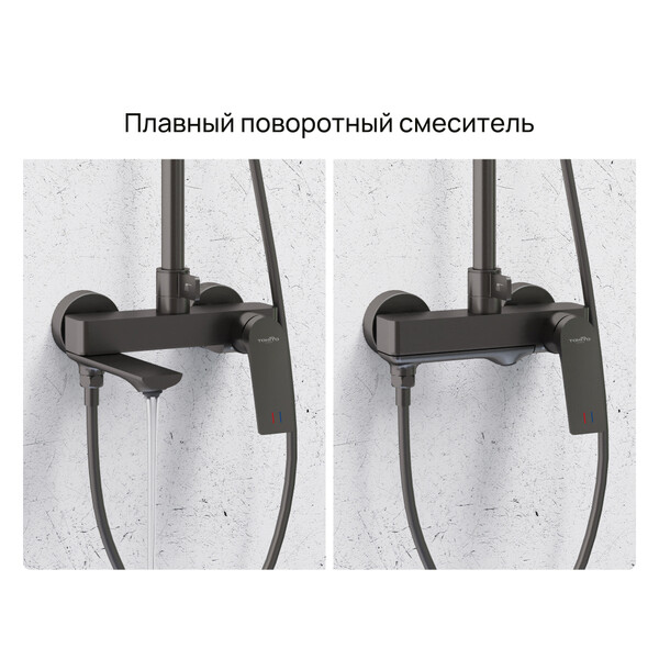 Стильная душевая стойка в цвете графит с тропическим душем – незаменимый элемент в современной ванной комнате. Душевой комплект обладает поворотным смесителем, что обеспечивает максимальный комфорт при его использовании. Латунный корпус смесителя гарантирует ему долгий срок службы.