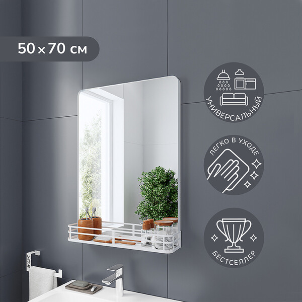 Прямоугольное зеркало с полкой Malta — удачное решение для интерьера ванной комнаты. Отлично подойдет для размещения над умывальником, поможет с комфортом проводить утренние и вечерние гигиенические процедуры. Зеркало прямоугольное, с декоративной рамой белого цвета и шлифованной кромкой, выполнено в дизайнерском стиле. Вертикальная установка зрительно увеличивает высоту потолка. Зеркало визуально расширяет пространство ванной за счет отражения света. Крепления приобретаются отдельно. Диаметр подходящего дюбеля/самореза – 3,5-4 мм.