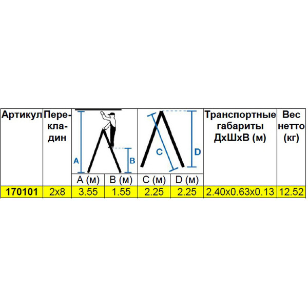 Предназначена для выполнения строительных, ремонтных, отделочных или иных видов работ, когда необходимо произвести какие-либо действия на высоте. Востребована малярами и электриками. Двухсторонняя стремянка с перекладинами. Прочные стальные шарниры. Страховка цепями от саморасхождения. Фиксаторы для безопасной транспортировки. Боковины из высококачественных пород древесины. Непроводящий ток материал. Перекладины из твердых пород дерева. Экологически безвредная древесина. Продукт сертифицирован в строгом соответствии с ГОСТ 24258-88 и DIN EN-131.
