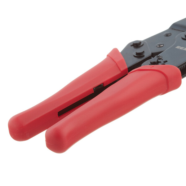Предназначен для обжима коаксиальных разъемов RG-59, RG-58, RG-62. Корпус обработан воронением и изготовлен из высокопрочной закаленной инструментальной стали, с регулятором силы сжатия. Храповой механизм гарантирует полный цикл качественной опрессовки. Обжимные губки съемные из стального микролитья. Клещи оборудованы возвратным механизмом для обеспечения обратного хода рукояток и специальным передаточным механизмом, который уменьшает нагрузку на руку при сжатии, облегчая длительную работу инструментом. Удобные рукоятки выполнены из нескользящего плотного синтетического покрытия, они сделают работу с инструментом легкой и приятной.