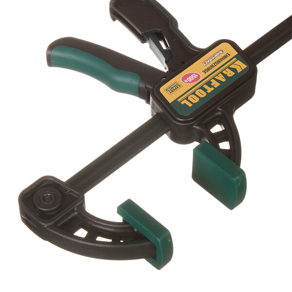 Струбцина быстрозажимная предназначена для фиксации и удержания деталей при выполнении столярных и слесарных работ. Инновационная конструкция позволяет работать одной рукой. Быстрый зажим заготовок. Корпус, армированный фибергласом, сочетает в себе легкость пластика и прочность металла. Эффект рычага обеспечивает многократное увеличение прижимной силы. Переставная конструкция предоставляет возможность использования инструмента как для зажима, так и для распора.
