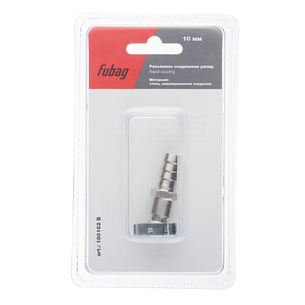 Переходник рапид-елочка для подключения компрессора к пневмоинструменту с помощью шланга. Диаметр шланга 10 мм. Крепление к инструменту – рапид, к шлангу – елочка. Обжимное кольцо 10x15 мм в комплекте. Поставляется в блистере.